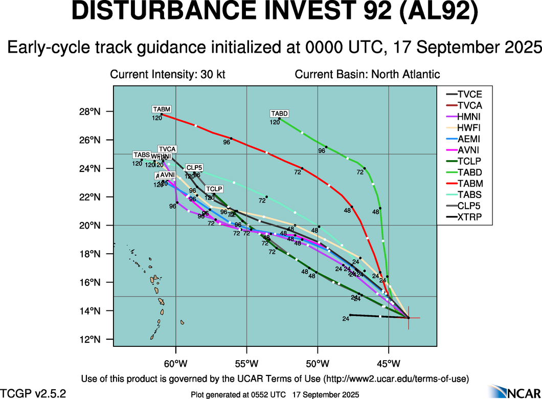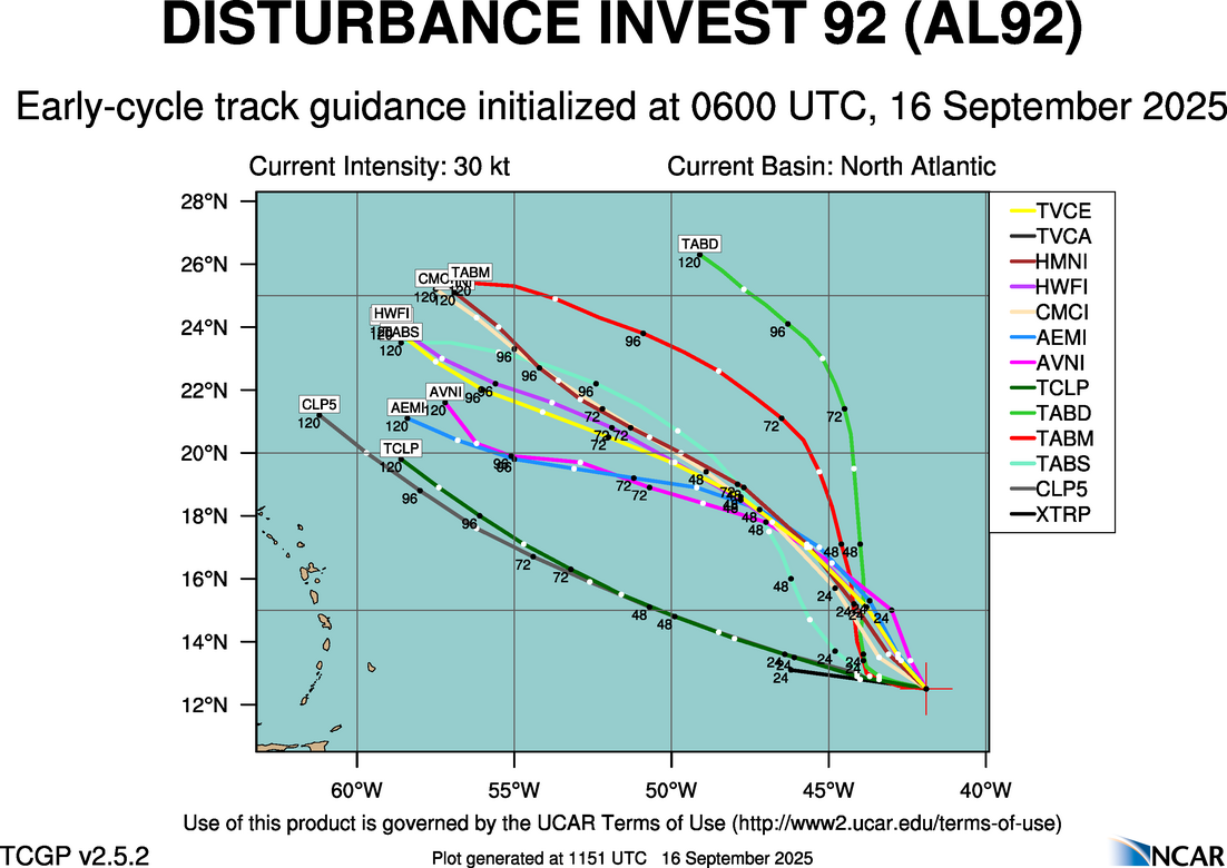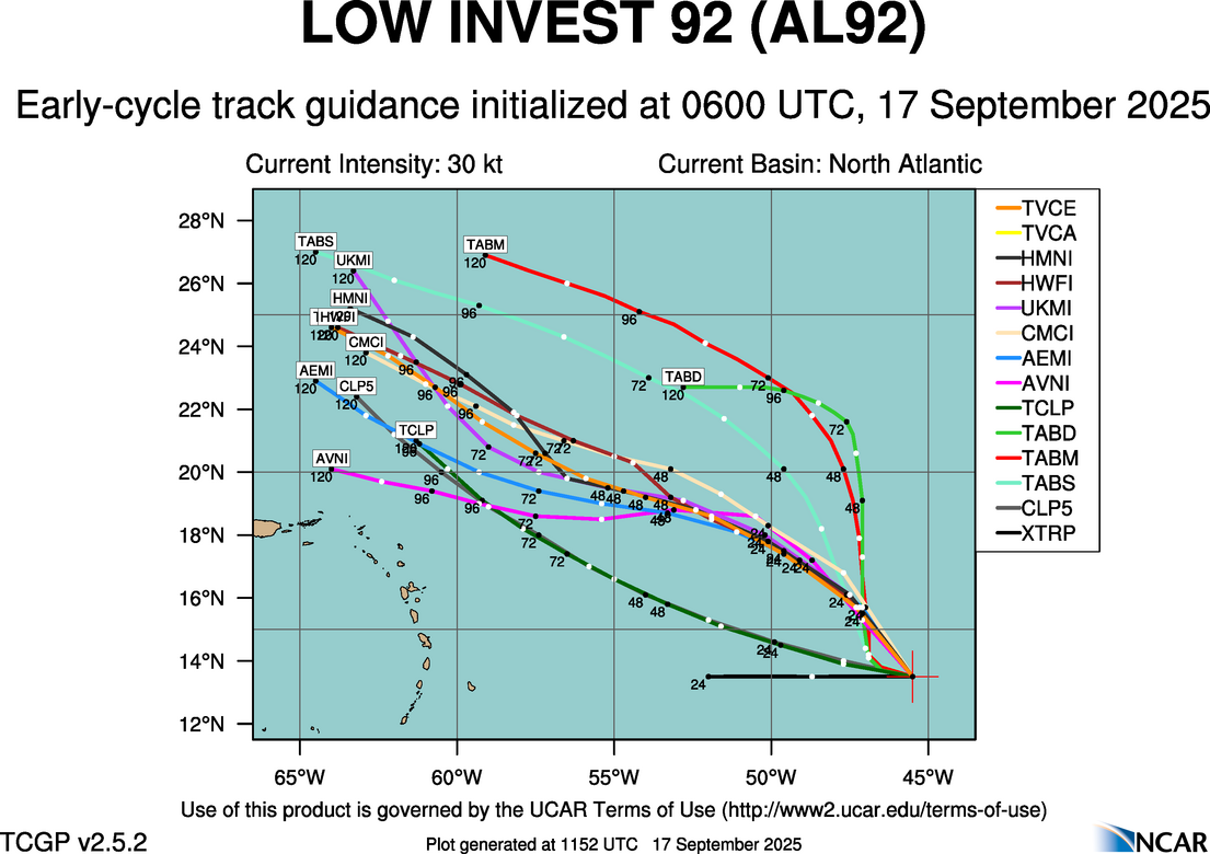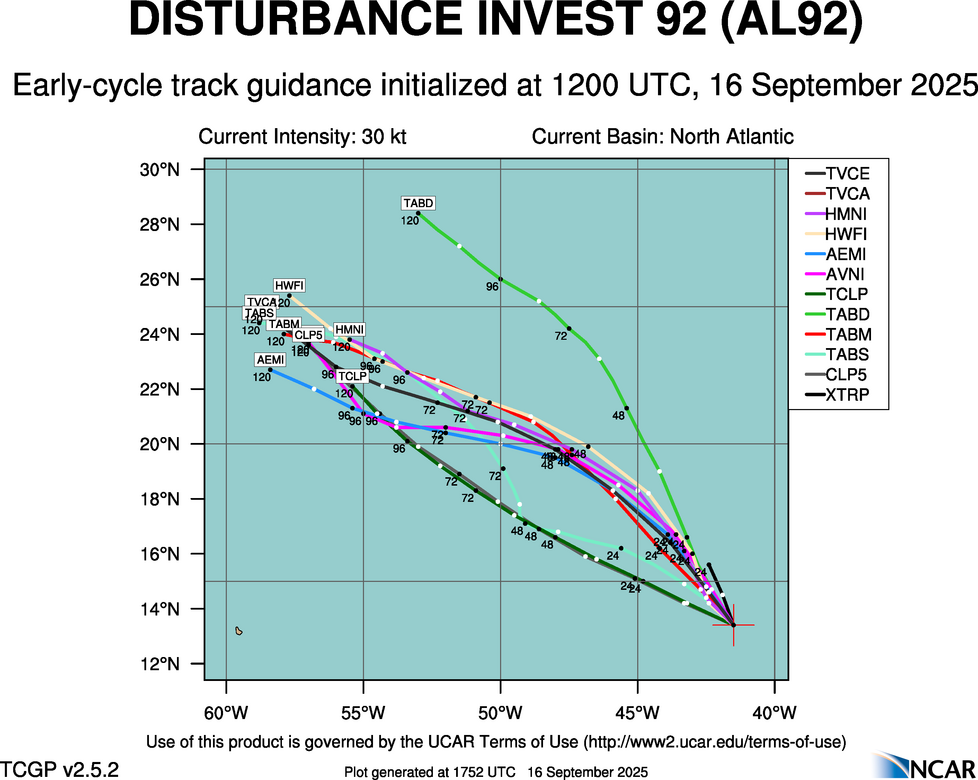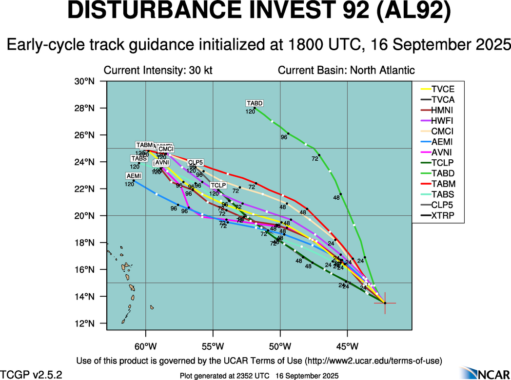 Real-Time Guidance | Archive of Early Track Plots for TROPICAL DEPRESSION INVEST 92 (AL92)