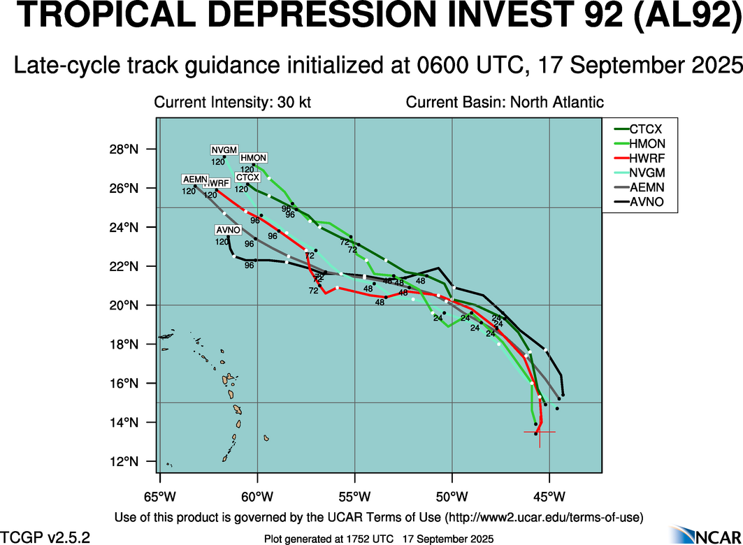 Real-Time Guidance | Archive of Late Track Plots for TROPICAL DEPRESSION INVEST 92 (AL92)
