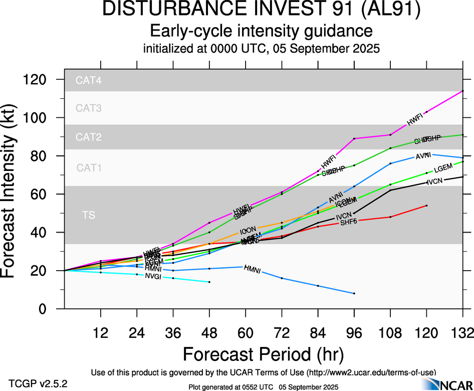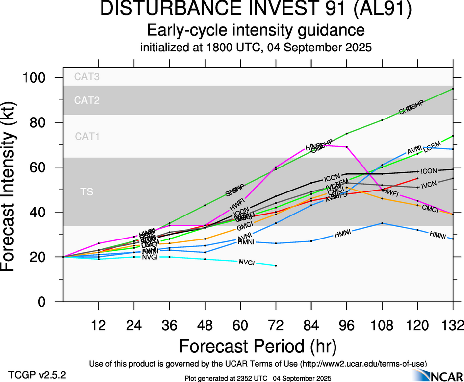 Real-Time Guidance | Archive of Early Intensity Plots for INVEST 91 (AL91)