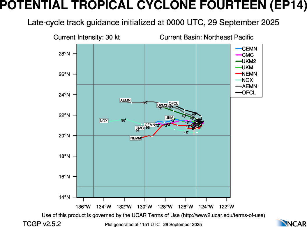 Real-Time Guidance | Archive of Late Track Plots for FOURTEEN (EP14)