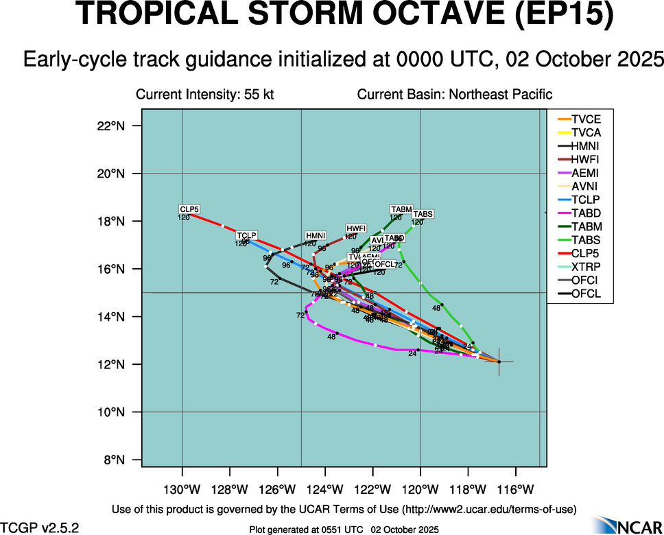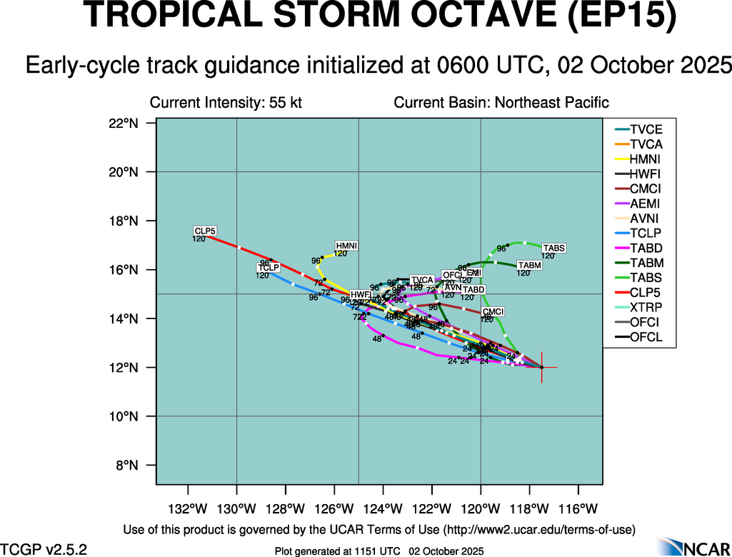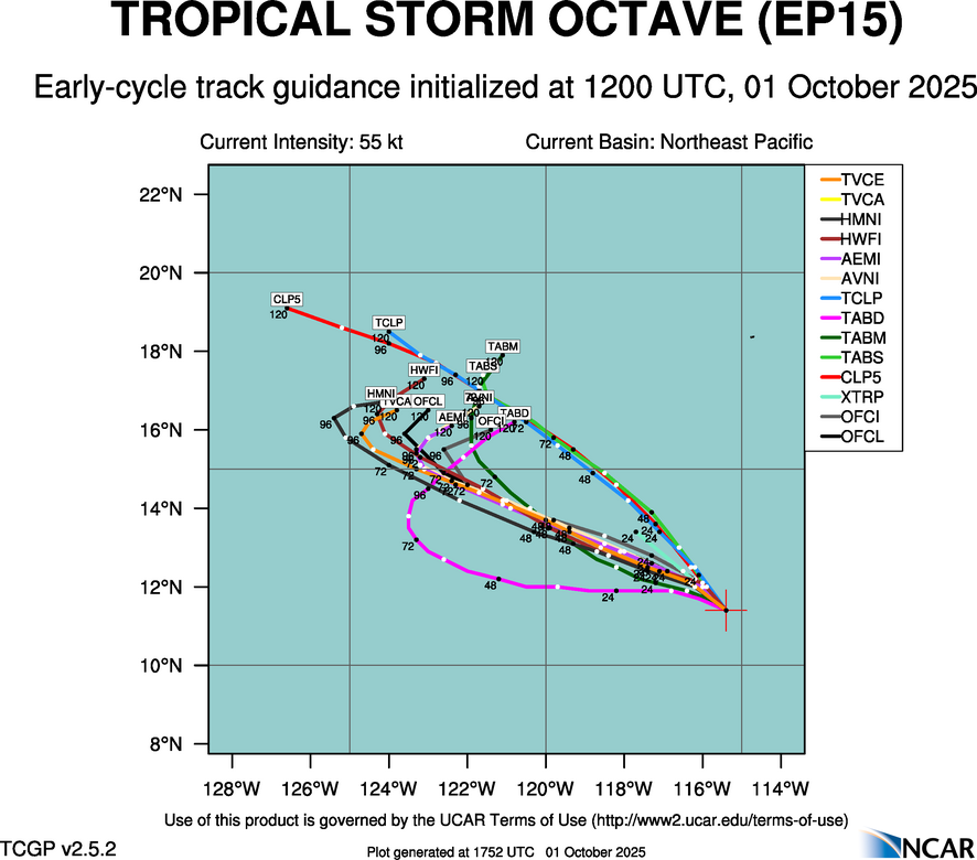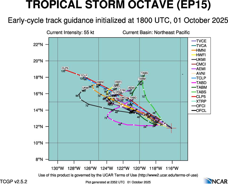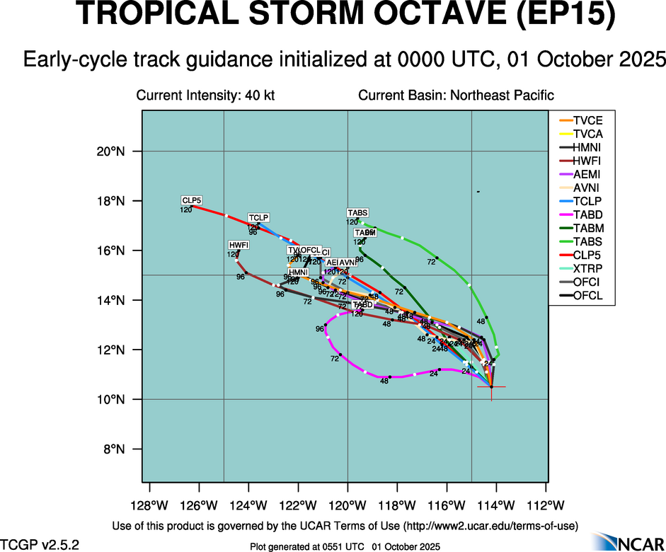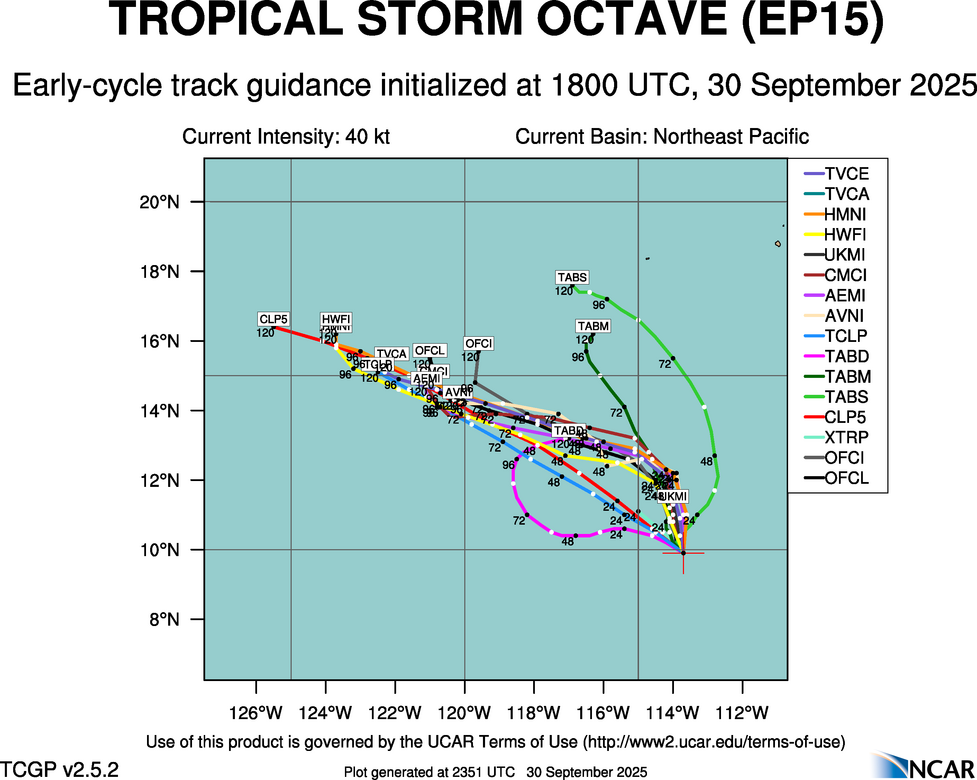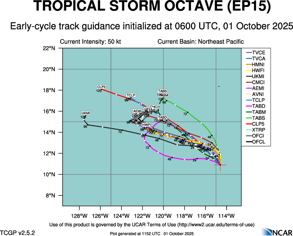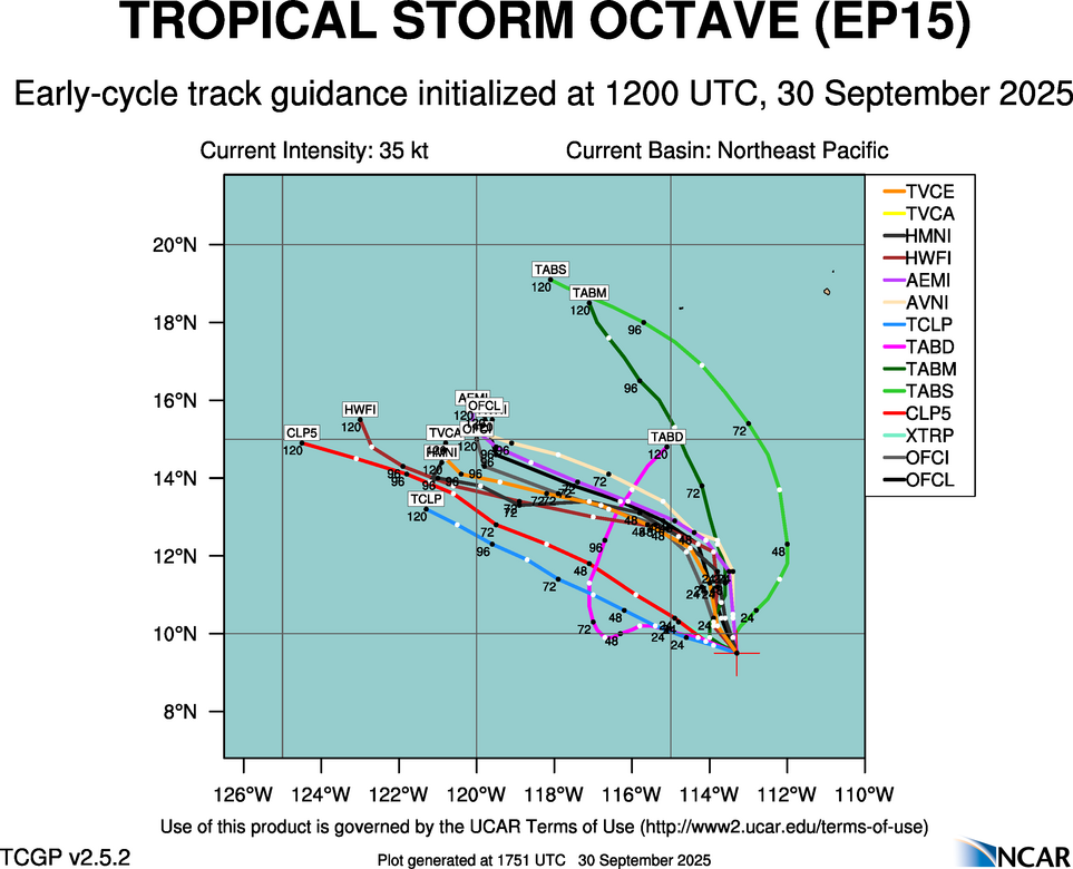 Real-Time Guidance | Archive of Early Track Plots for TROPICAL STORM OCTAVE (EP15)