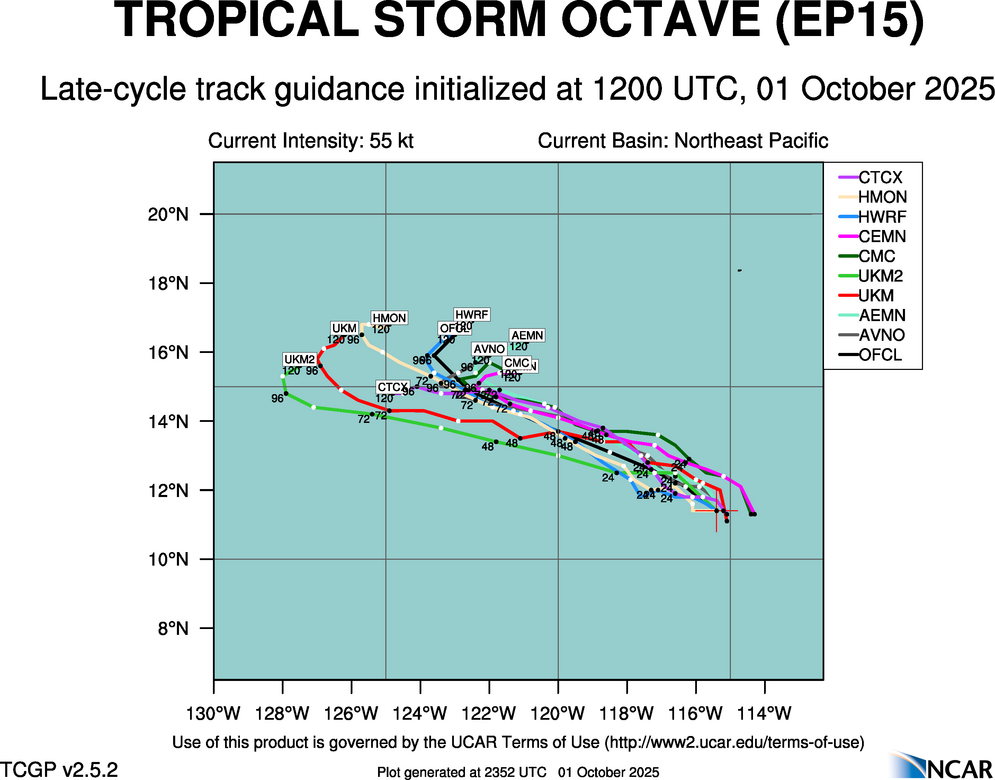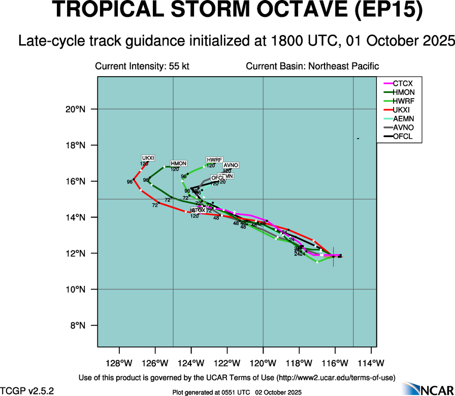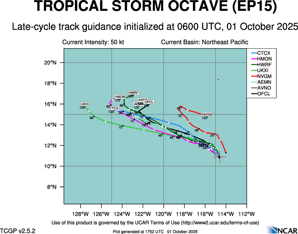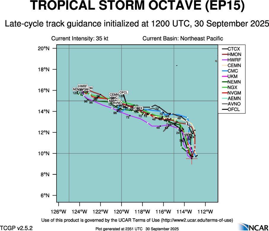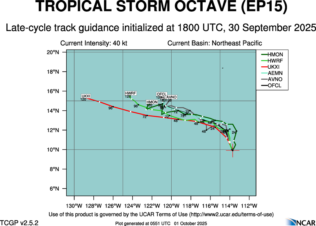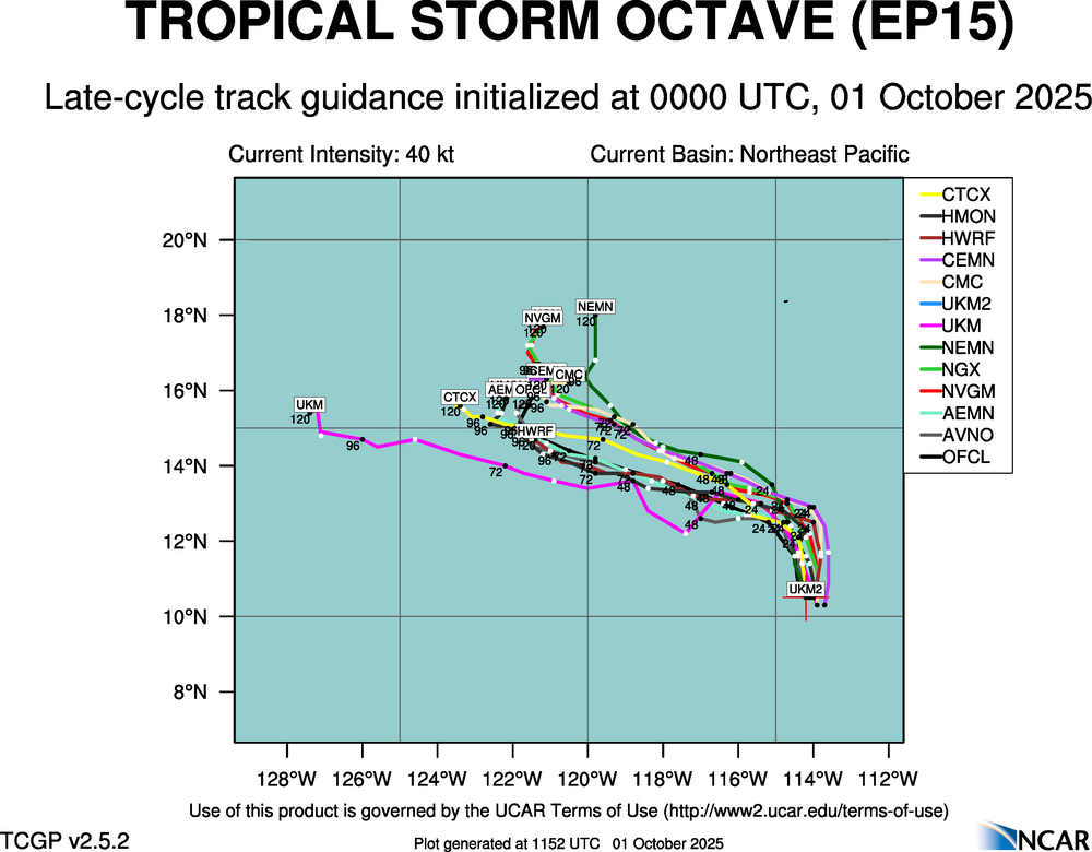 Real-Time Guidance | Archive of Late Track Plots for TROPICAL STORM OCTAVE (EP15)