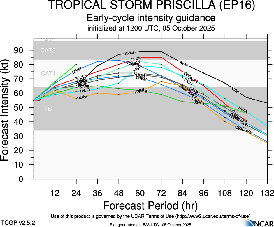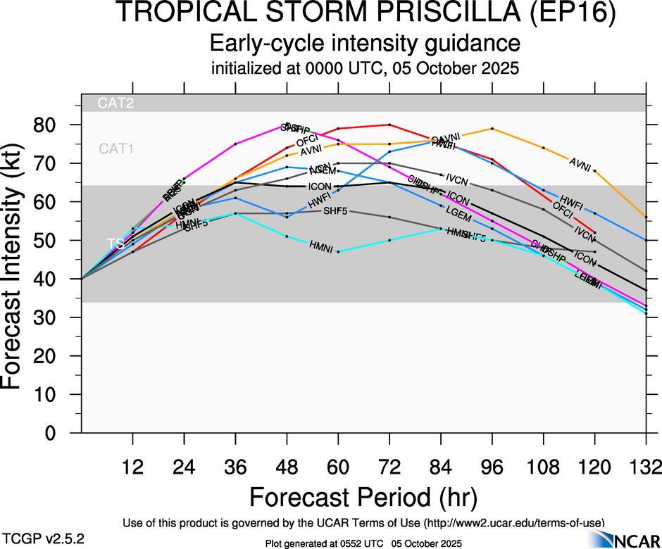 Real-Time Guidance | Archive of Early Intensity Plots for TROPICAL STORM PRISCILLA (EP16)
