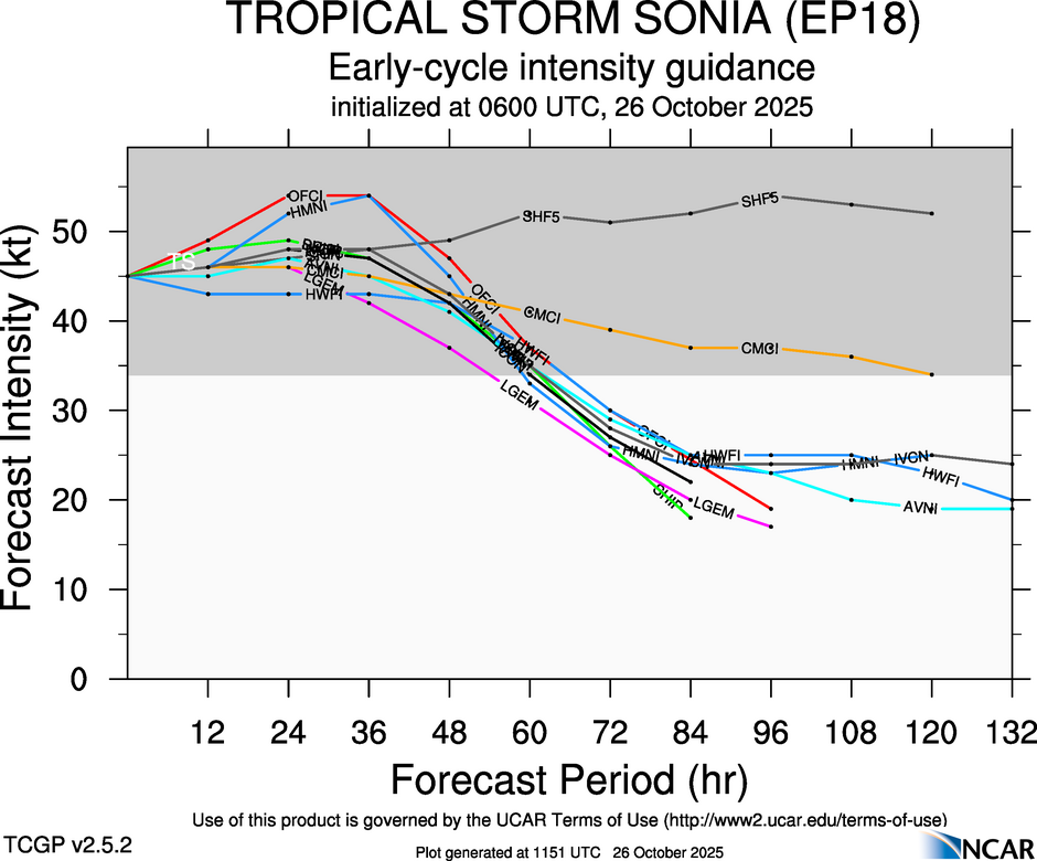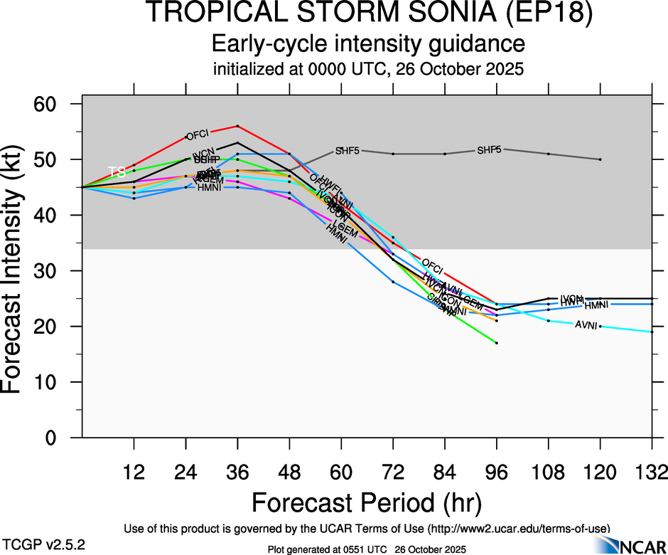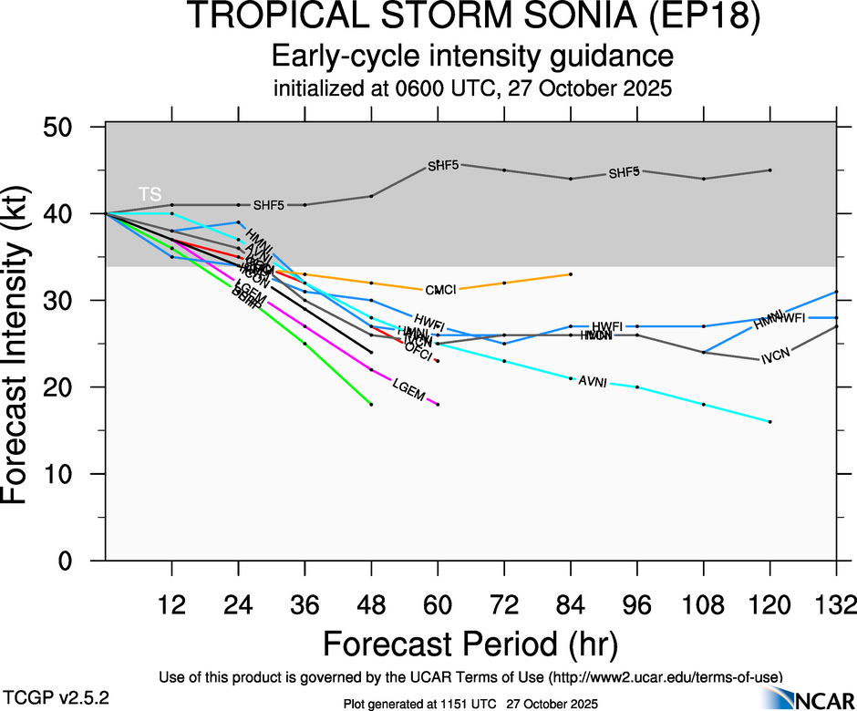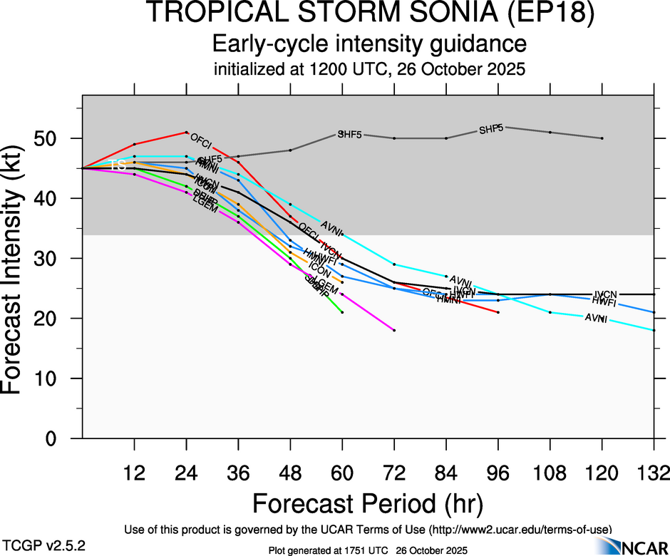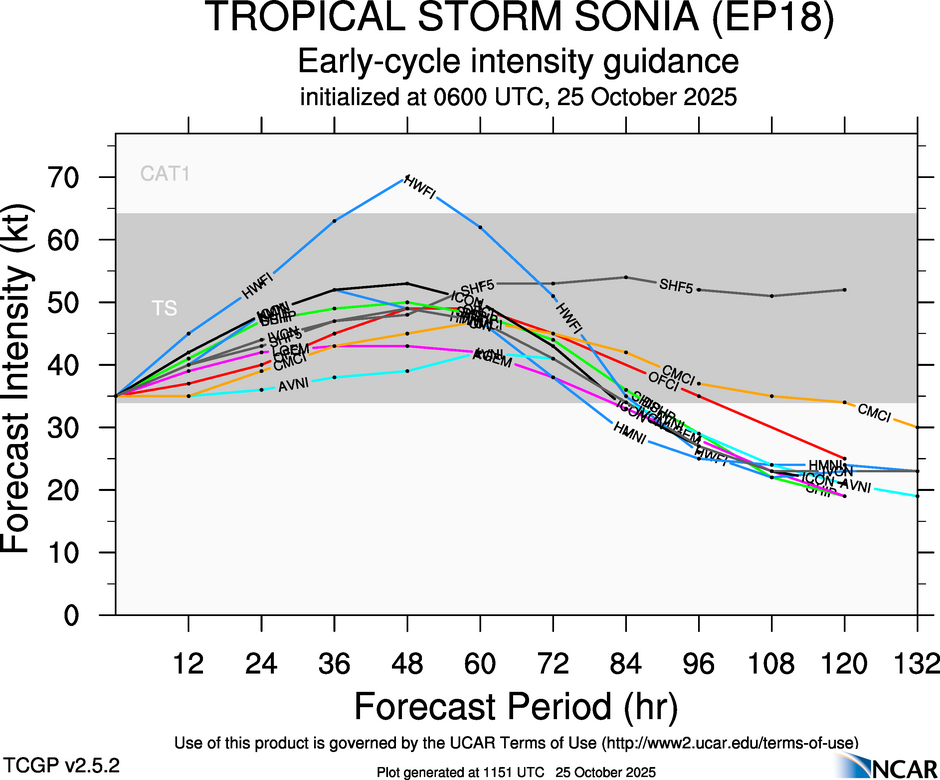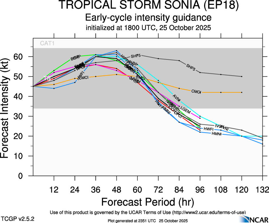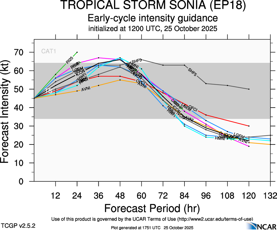 Real-Time Guidance | Archive of Early Intensity Plots for TROPICAL STORM SONIA (EP18)