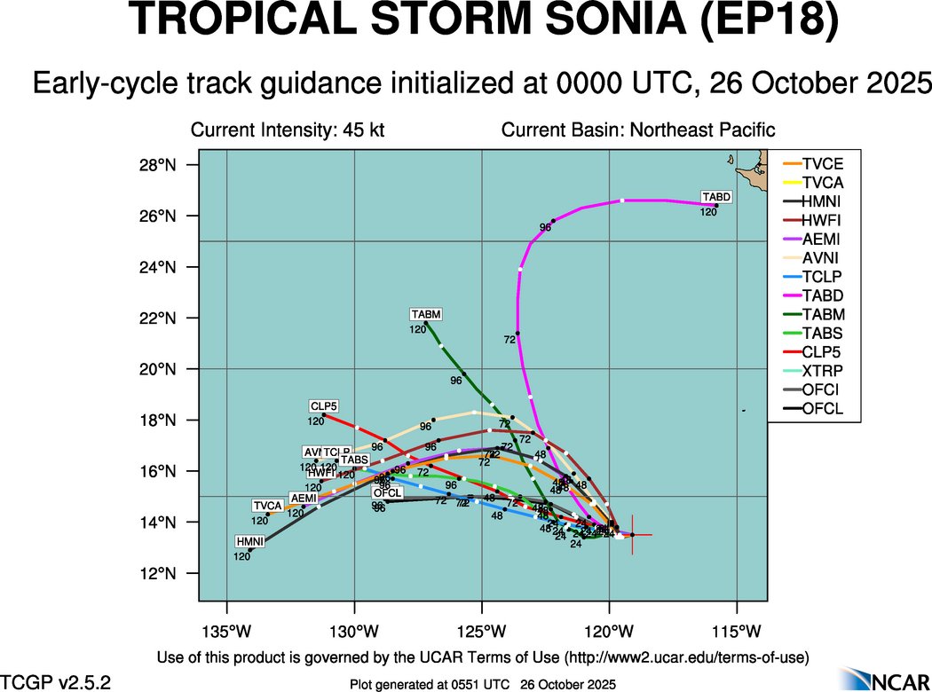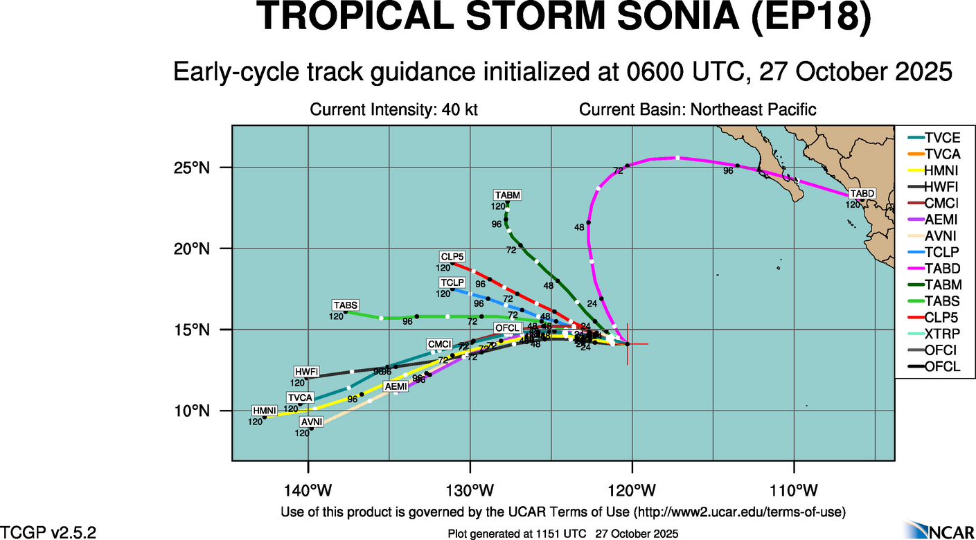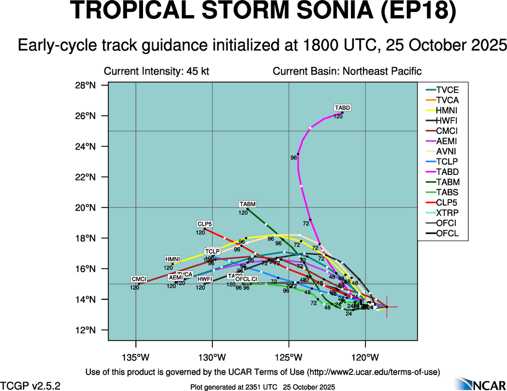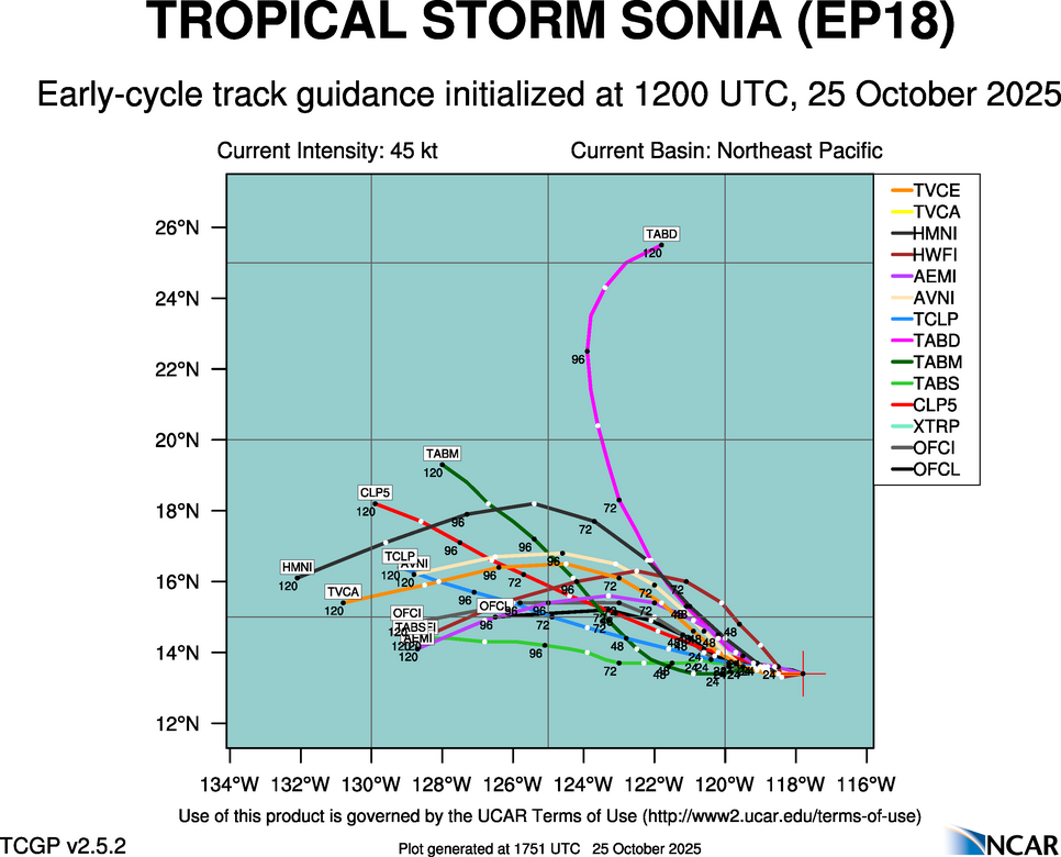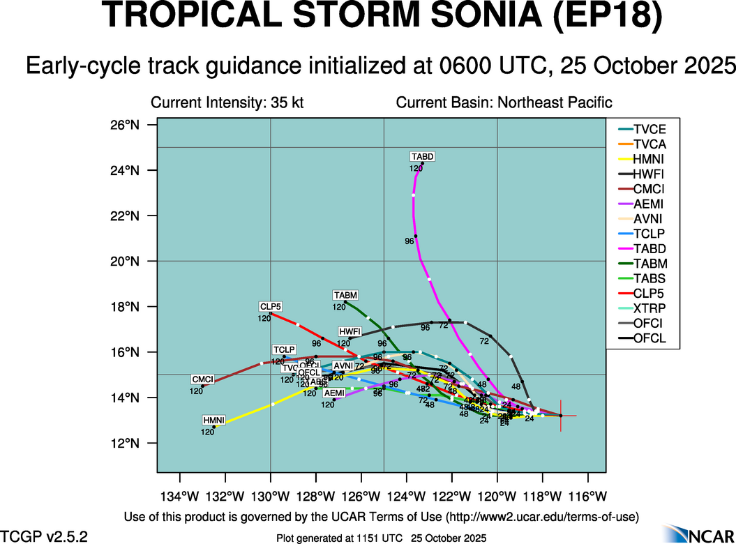 Real-Time Guidance | Archive of Early Track Plots for TROPICAL STORM SONIA (EP18)