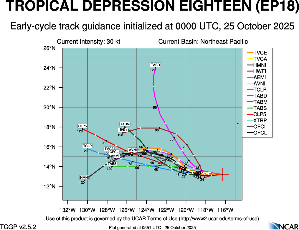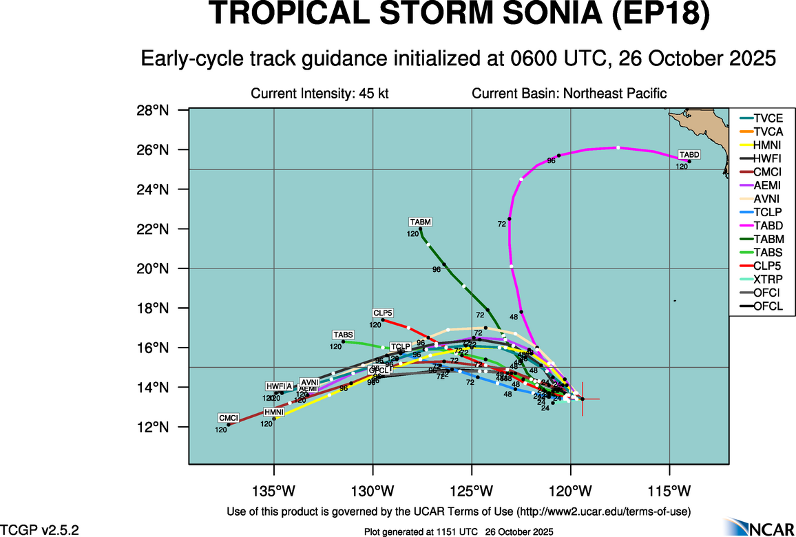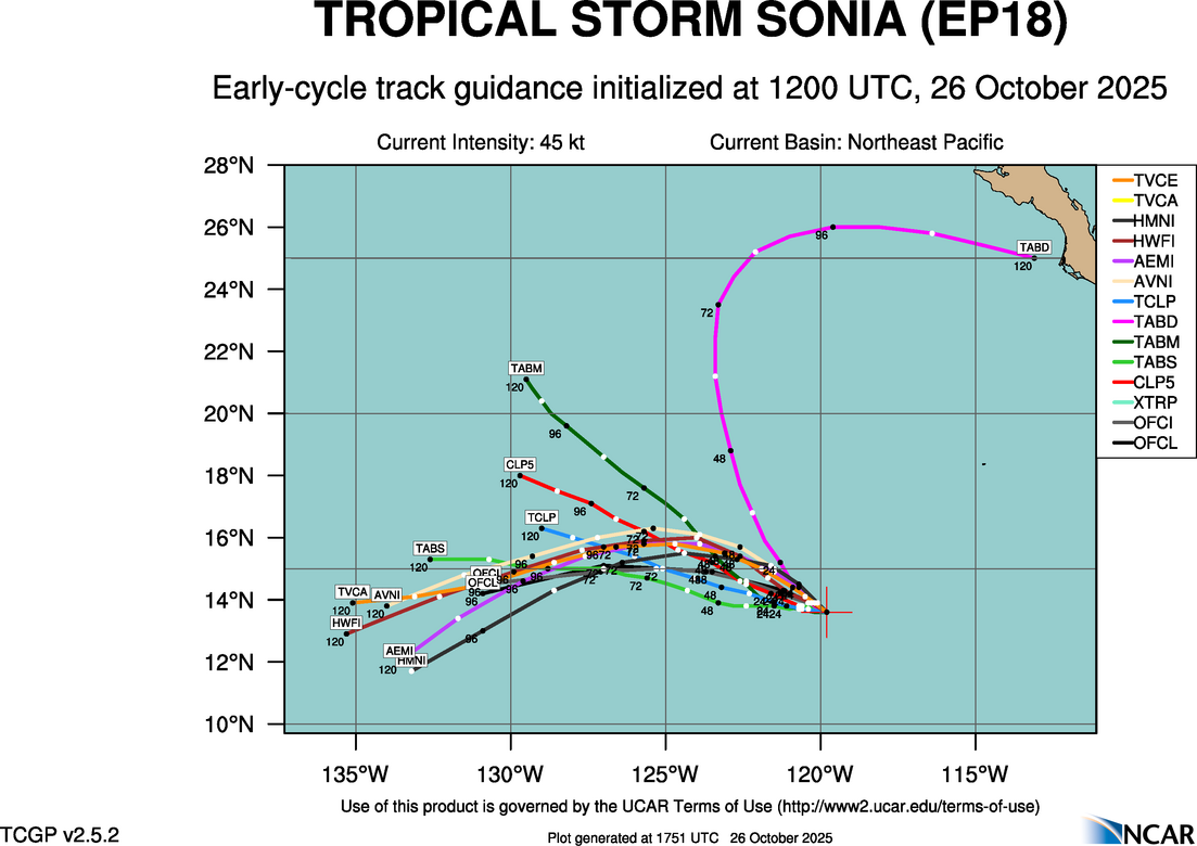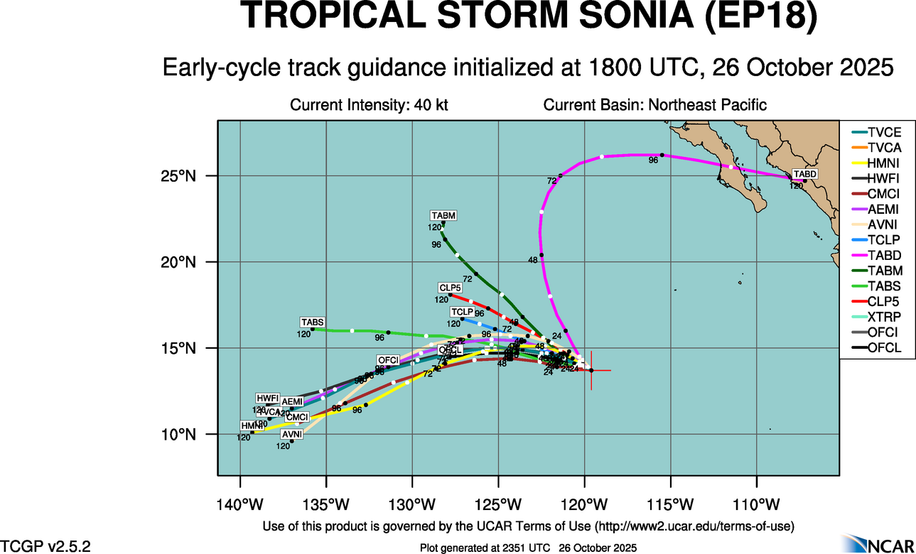 Real-Time Guidance | Archive of Early Track Plots for TROPICAL STORM SONIA (EP18)