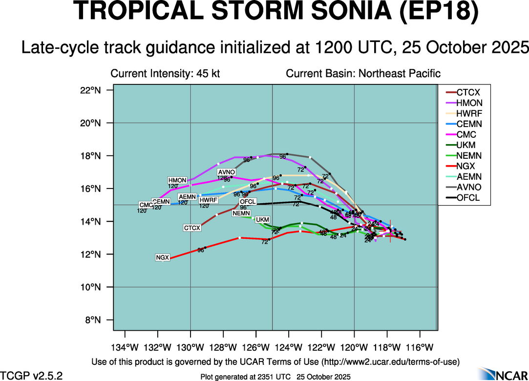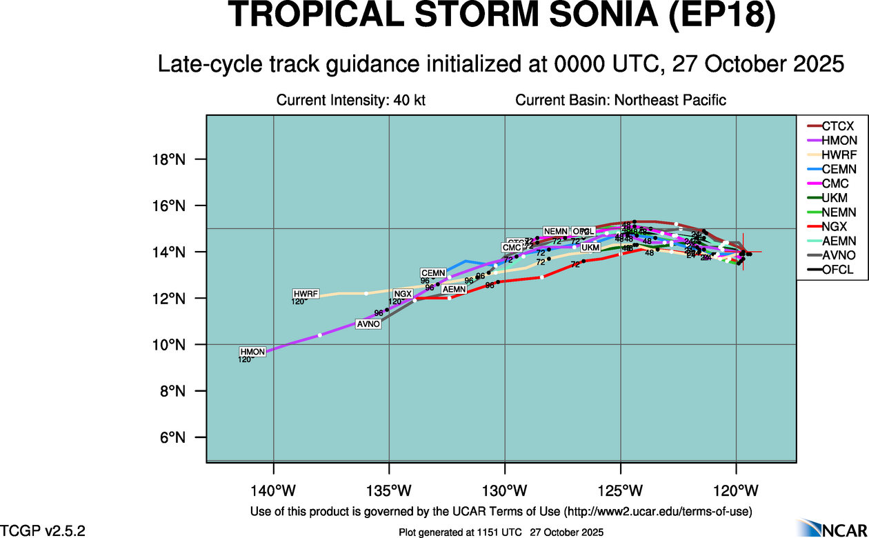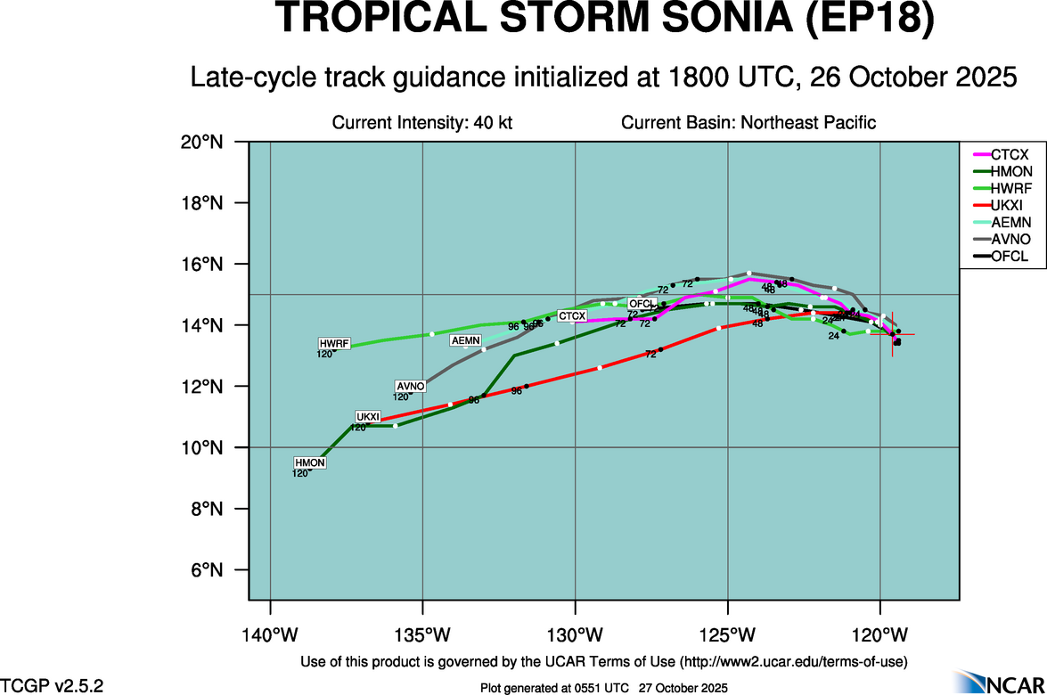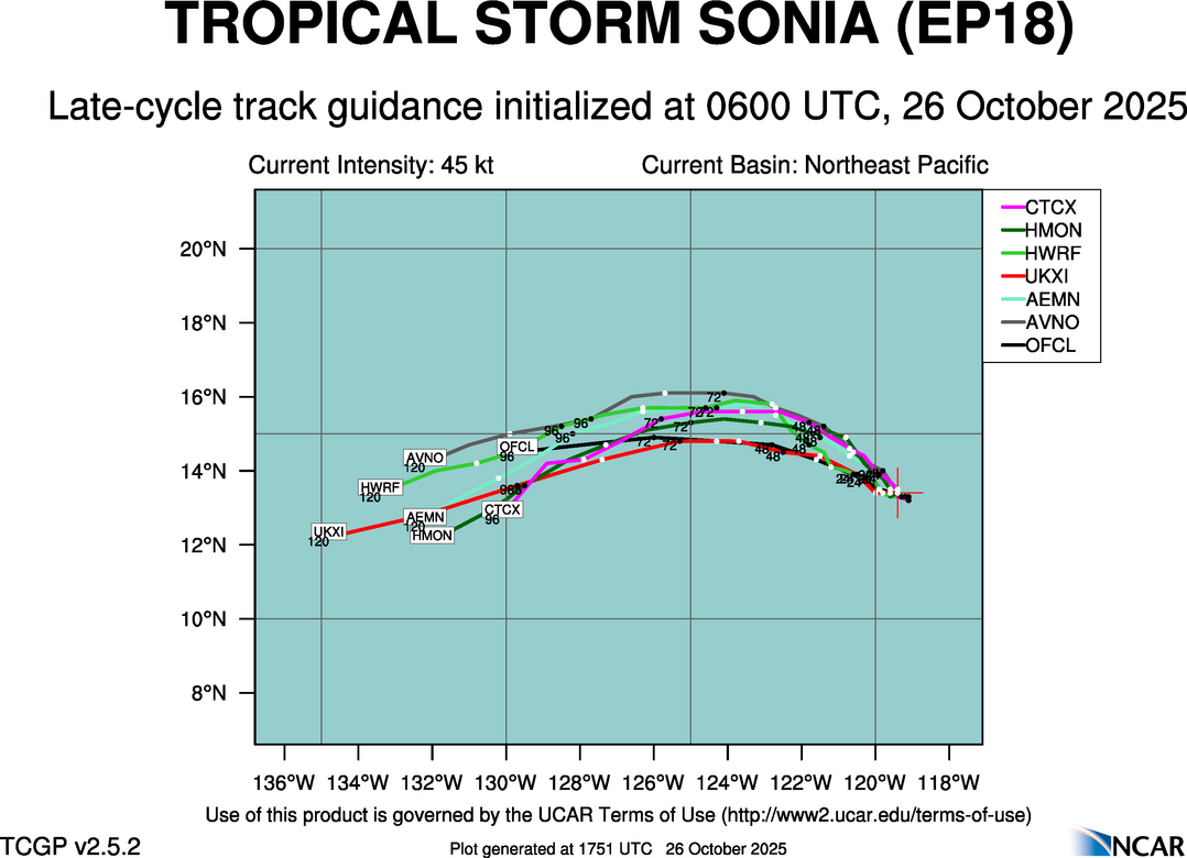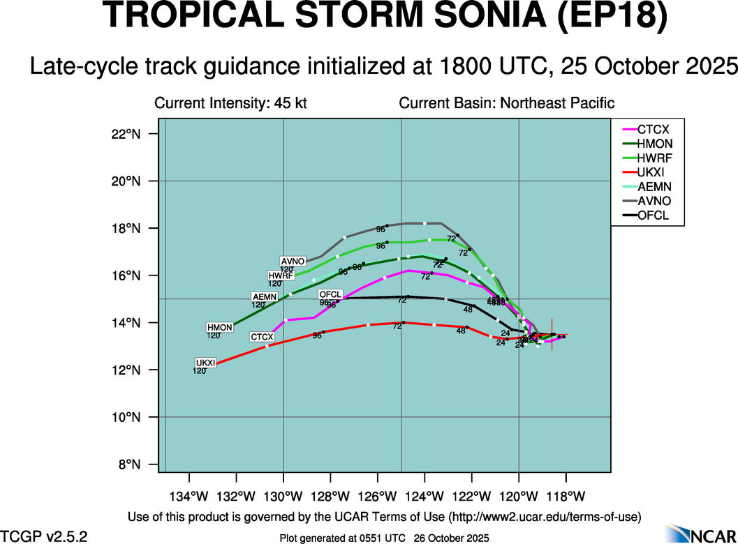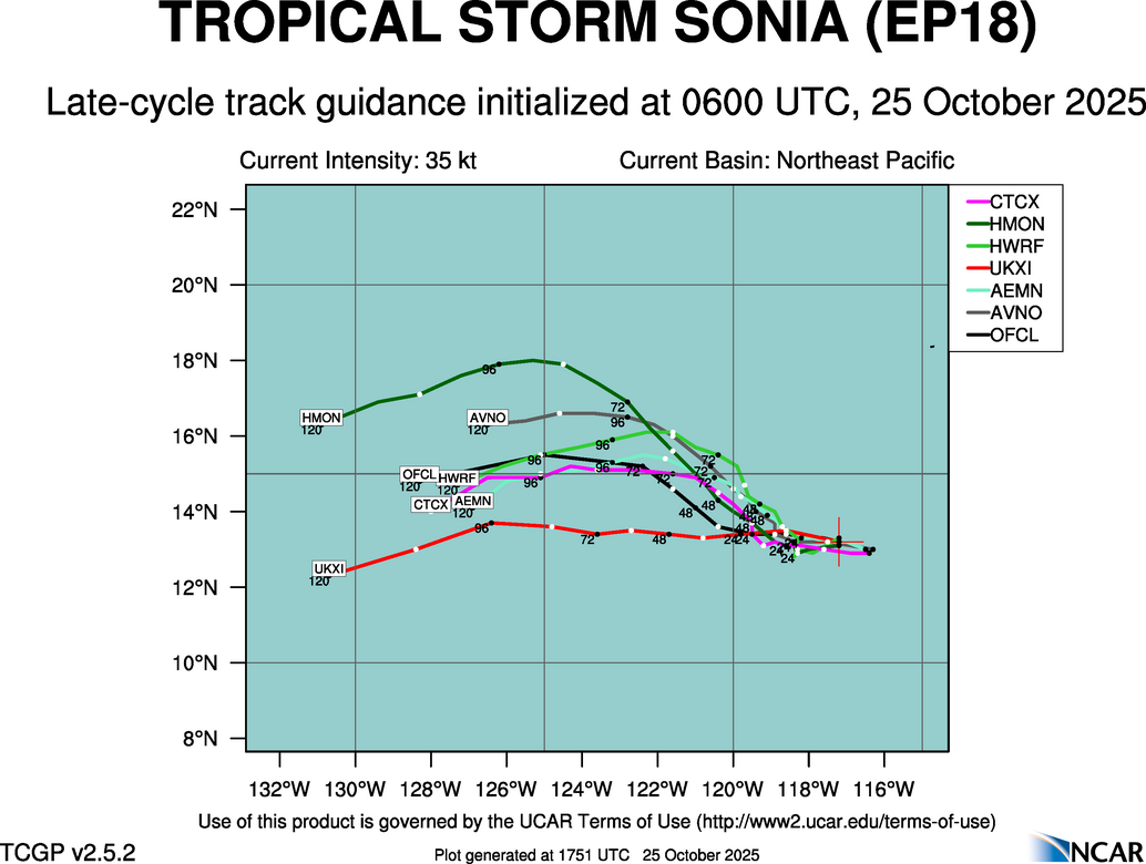 Archive of Real-time Late Track Plots for TROPICAL STORM SONIA (EP18)