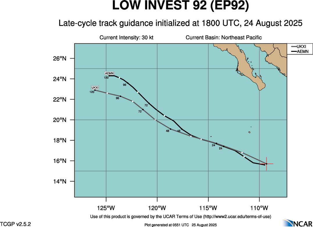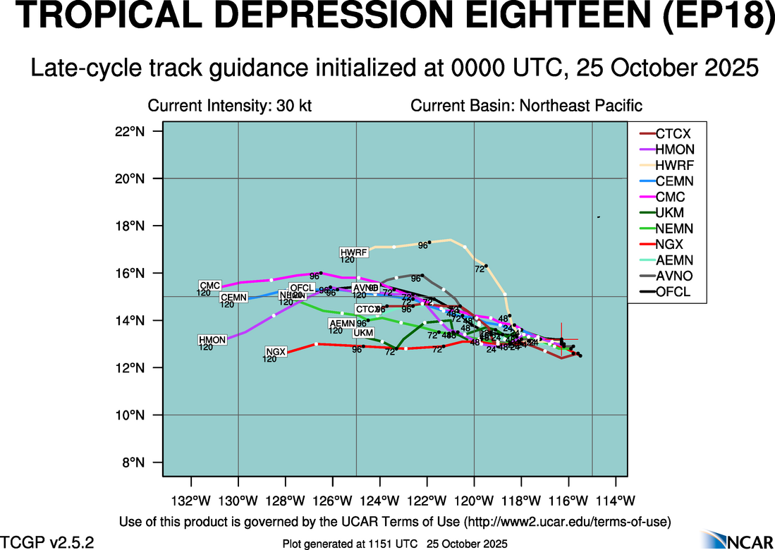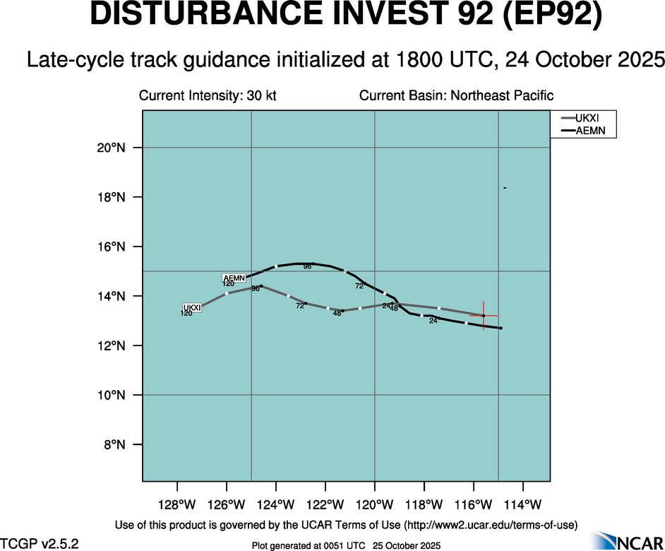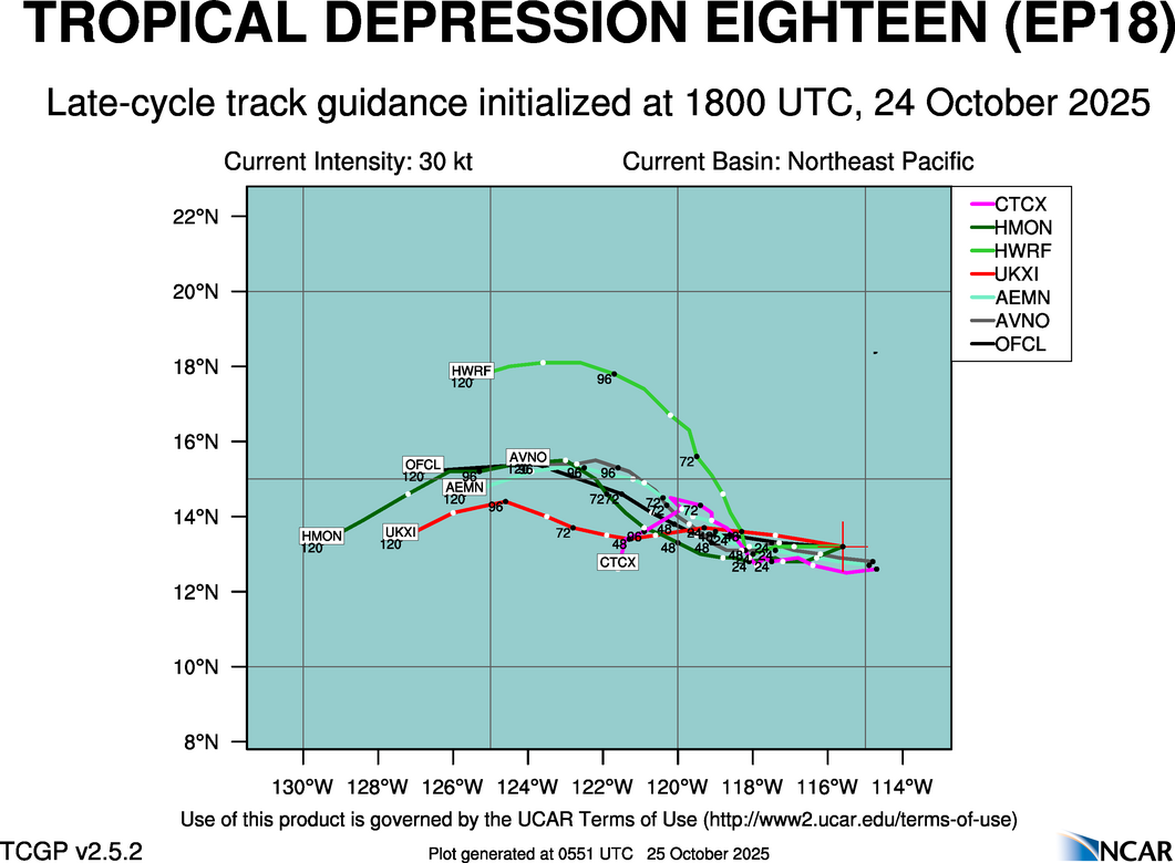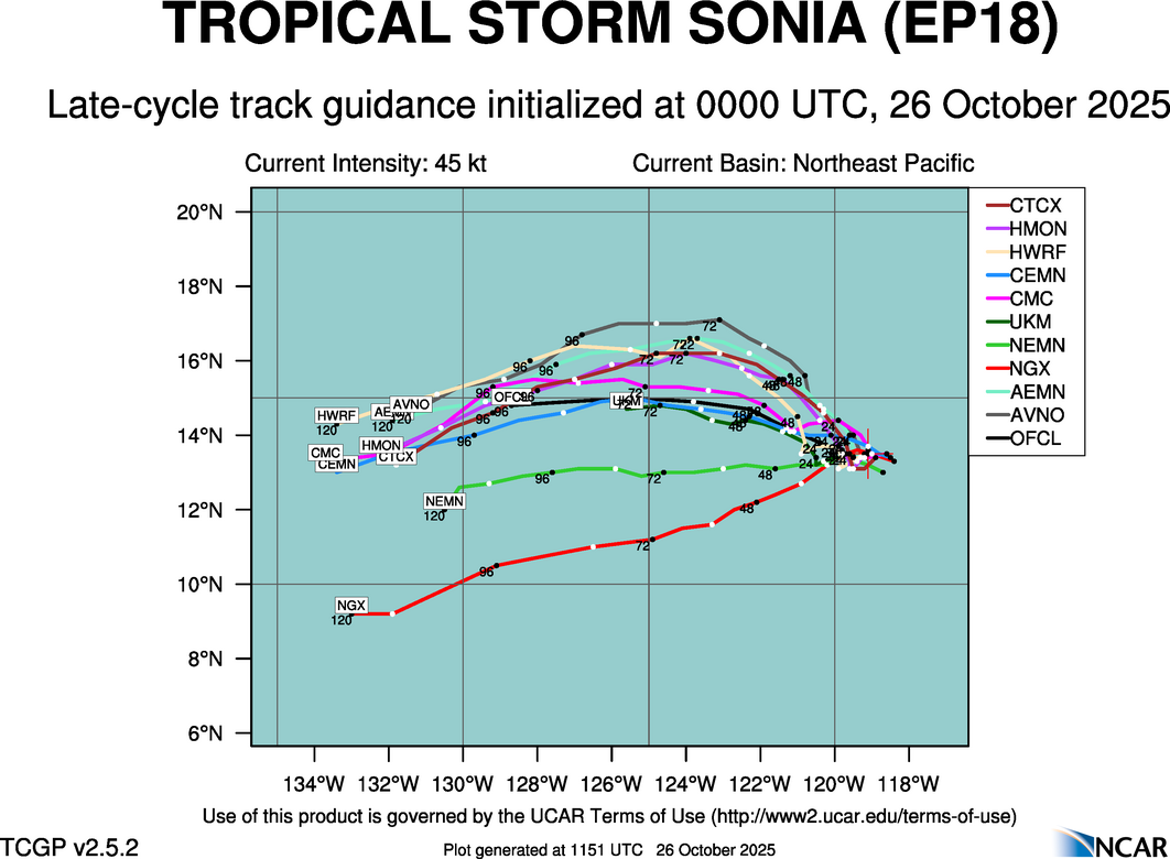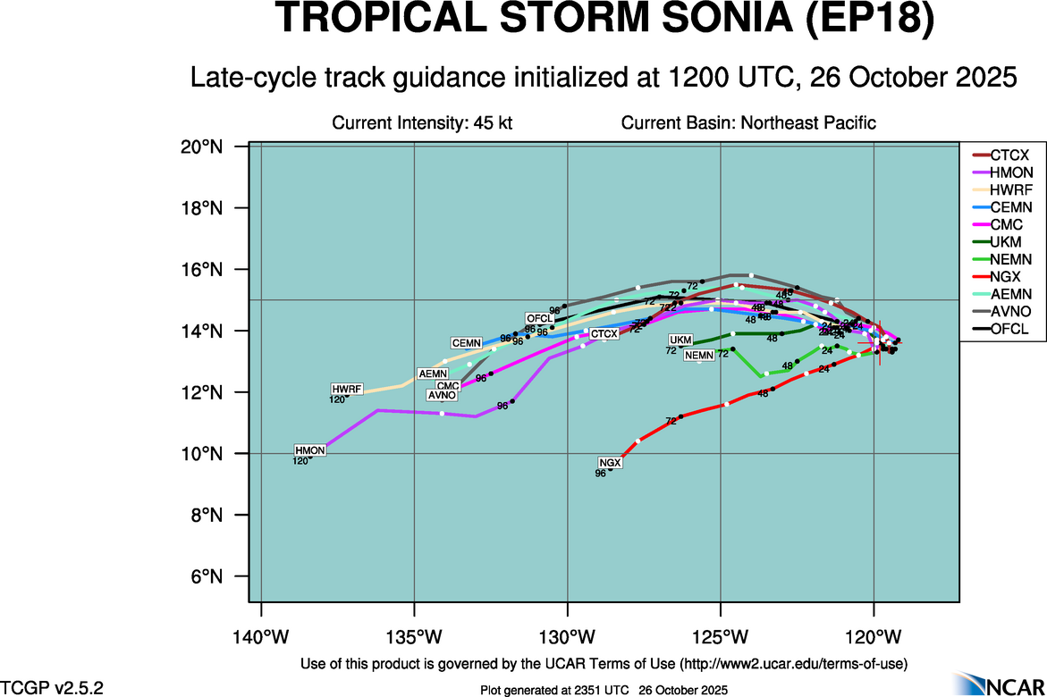 Archive of Real-time Late Track Plots for TROPICAL STORM SONIA (EP18)