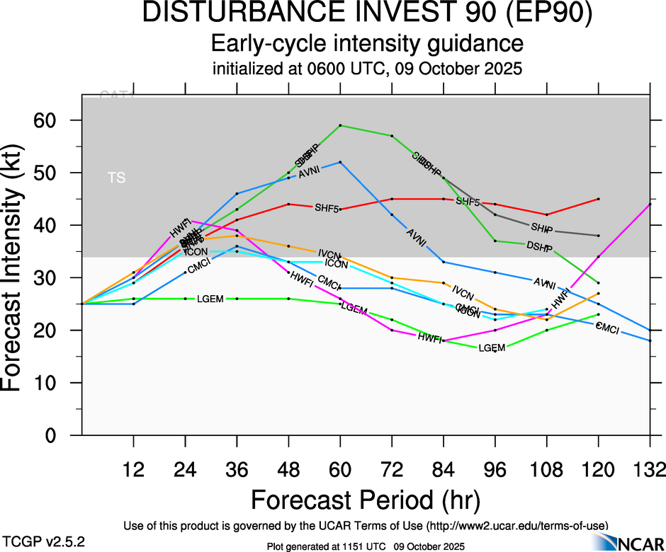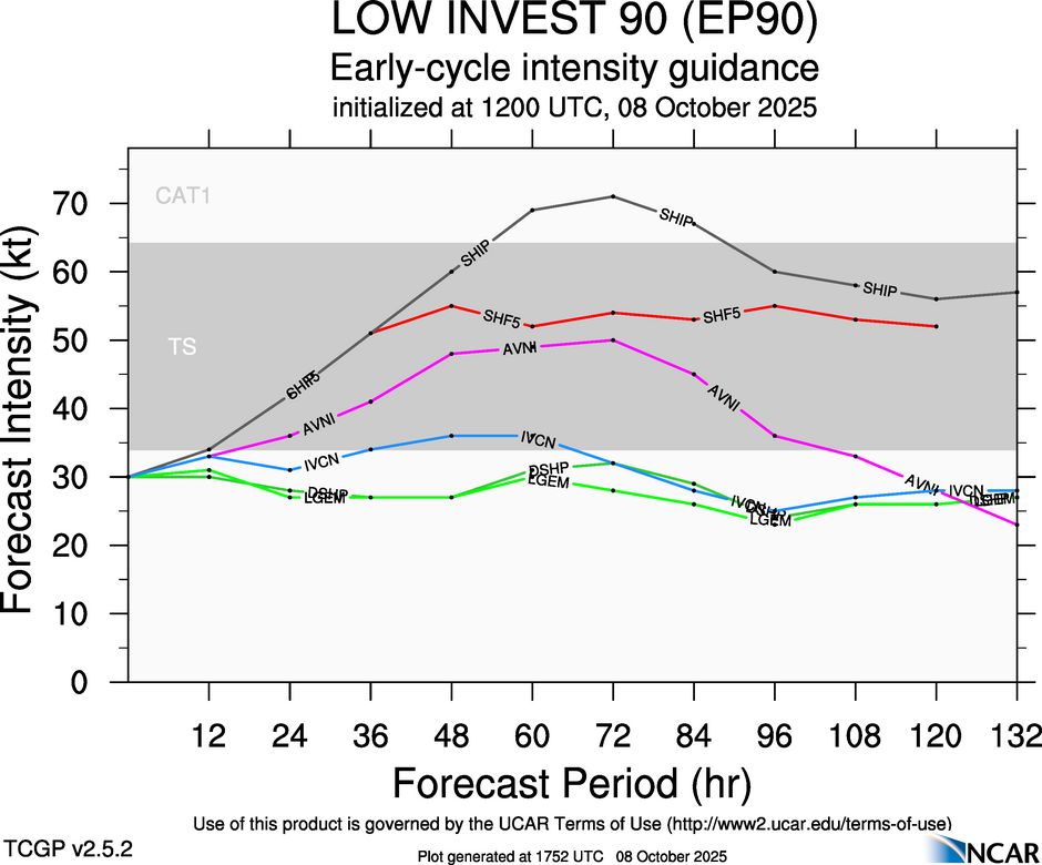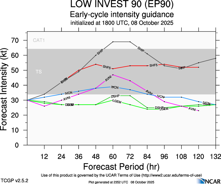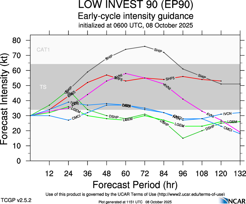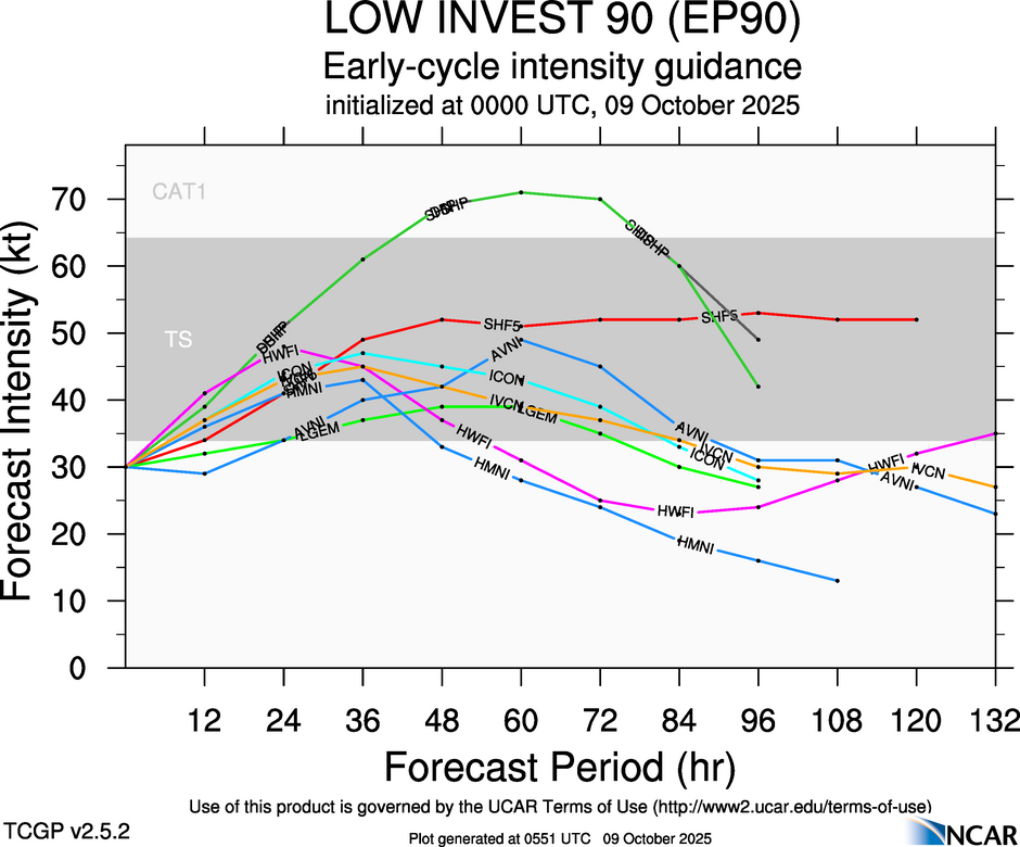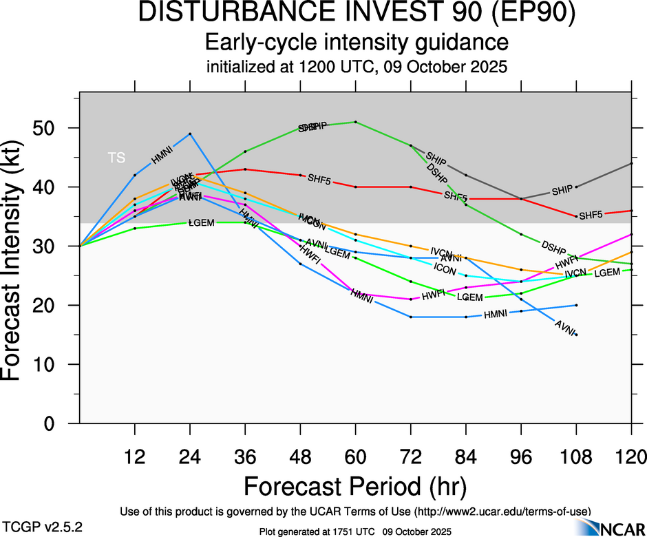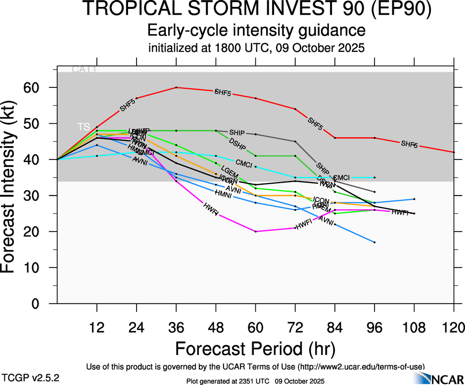 Real-Time Guidance | Archive of Early Intensity Plots for TROPICAL STORM INVEST 90 (EP90)