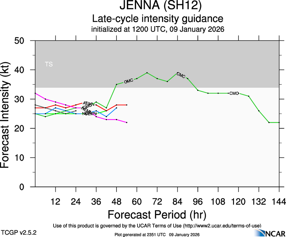 This page provides plots and information for TWELVE (SH12). The left side of this page provides TCGP-generated plots of numerical guidance and other TCGP-curated data. The right side of this page provides external links to additional information and products. Most of the model guidance displayed in the plots come from modeling centers outside of NCAR, such as NOAA, other national numerical weather prediction centers, and universities. Click here for information about who contributes to TCGP. Your use of this page is governed by the UCAR Terms of Service and this site's disclaimer. To obtain help for any item on this page, click on the question mark beside that item.